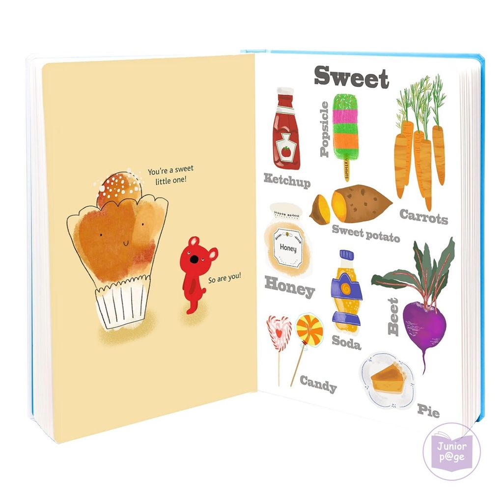 Taste the foods of the world with Mr. Bear! Mr. Bear takes children on a memorable taste adventure, from salty and sweet to spicy and umami, and everything in between. A visually appealing guide to the sense of taste, this book will introduce children to different foods, expand their vocabulary, and encourage them to try new foods and flavors! - Distinctive, visually appealing illustrations engage children - Introduces children to different tastes - Includes baguette-shaped bookmark that is attached to the book with a ribbon - Critically acclaimed, award-winning book character Fans of this book will also enjoy other books featuring Mr. Bear: Mr. Bear’s ABC, Mr. Bear’s Colors, Mr. Bear’s Birthday, Mr. Bear’s Little Shapes, and Mr. Bear’s Little Numbers. • Great family read-aloud book • Books for children aged 3 to 5 • Books for preschool and kindergarten children